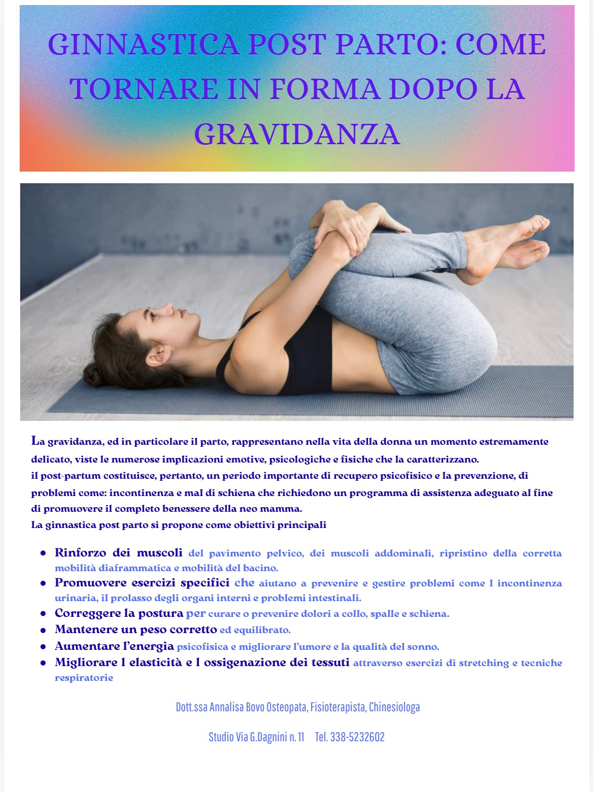 Cerchi una fisioterapista per la riabilitazione del pavimento pelvico o una professionista specializzata in osteopatia pediatrica a Bologna? La Dott.ssa Annalisa Bovo propone trattamenti personalizzati per la prevenzione, valutazione e riabilitazione di disturbi e problematiche della donna e del bambino in tutte le fasi della loro vita, integrando tecniche osteopatiche e fisiochinesiterapiche. Lo studio organizza anche corsi di gruppo di ginnastica posturale e ginnastica del pavimento pelvico post gravidanza e per problematiche uroginecologiche. Competenza, professionalità e cura della persona accompagnano ciascun paziente verso un percorso di benessere completo e duraturo e a un miglioramento della qualità della vita.